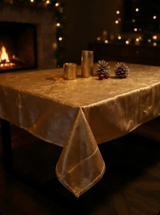 Luxe fluweel tafelkleed Dubai – Koper / Goud